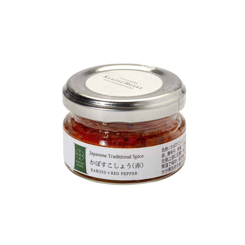 Moins connu que le yuzu kosho, le kabosu kosho rouge séduit par son intensité et sa fraîcheur. Élaboré à partir d’écorces de kabosu (agrume cousin du yuzu), de piment rouge et de sel, il développe un équilibre subtil entre acidité vive, chaleur piquante et parfum fruité.