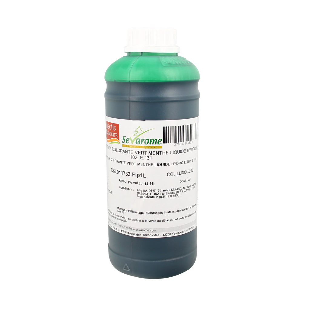 vert menthe liquide hydrosoluble à la saveur neutre.