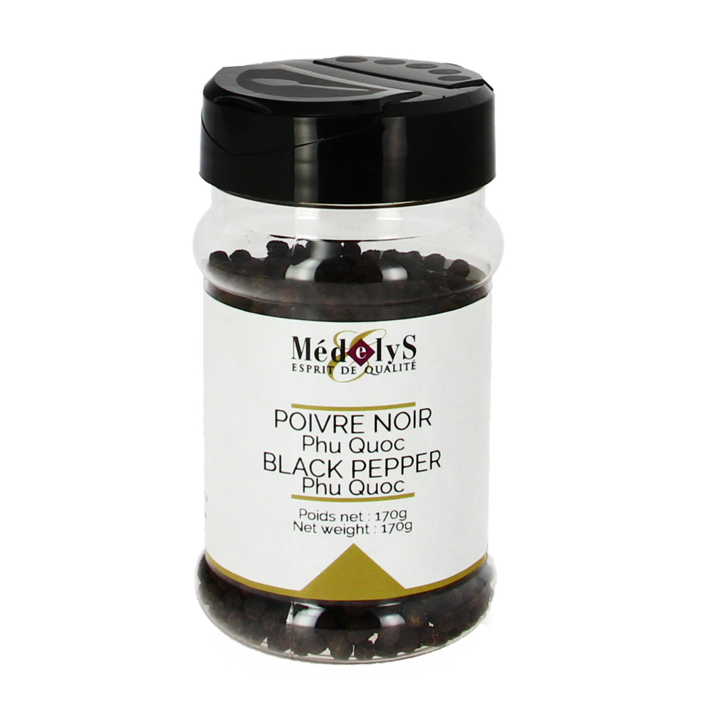 Récolté à la main puis séché au soleil, le poivre noir de Phu Quoc est originaire de l'île vietnamienne de Phu Quoc, dans le Golfe de la Thaïlande. Il possède des senteurs de cuir, des notes d'herbes sauvages et la puissance aromatique du camphre. L'attaque en bouche est franche.