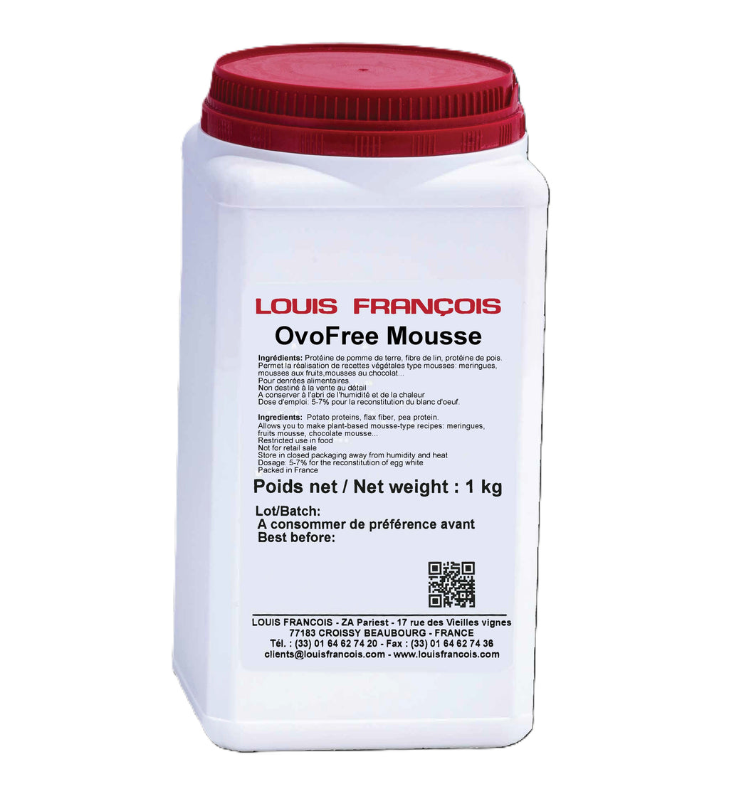 Il est conseillé d’utiliser l’OvoFree Mousse réhydraté de 5 à 7% soit 50 à 70g de poudre pour 930 à 950 g d’eau.