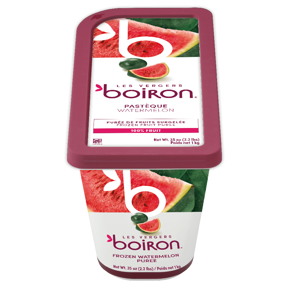 Du soleil sans noyau ! Il y a beaucoup de saveur dans cette purée de pastèque noire. Avec une couleur appétissante et une consistance onctueuse. Idéal pour les sorbets, glaces et granites, pâtes de fruits, desserts et macarons. Ou encore pour des préparations salées comme des vinaigrettes et des plats froids. Vous pouvez également créer des cocktails ou des boissons gazeuses avec de la purée de pastèque.