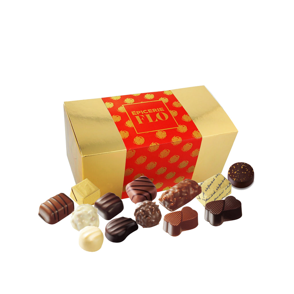 Assortiment de chocolats de fabrication française 100% pur beurre de cacao.